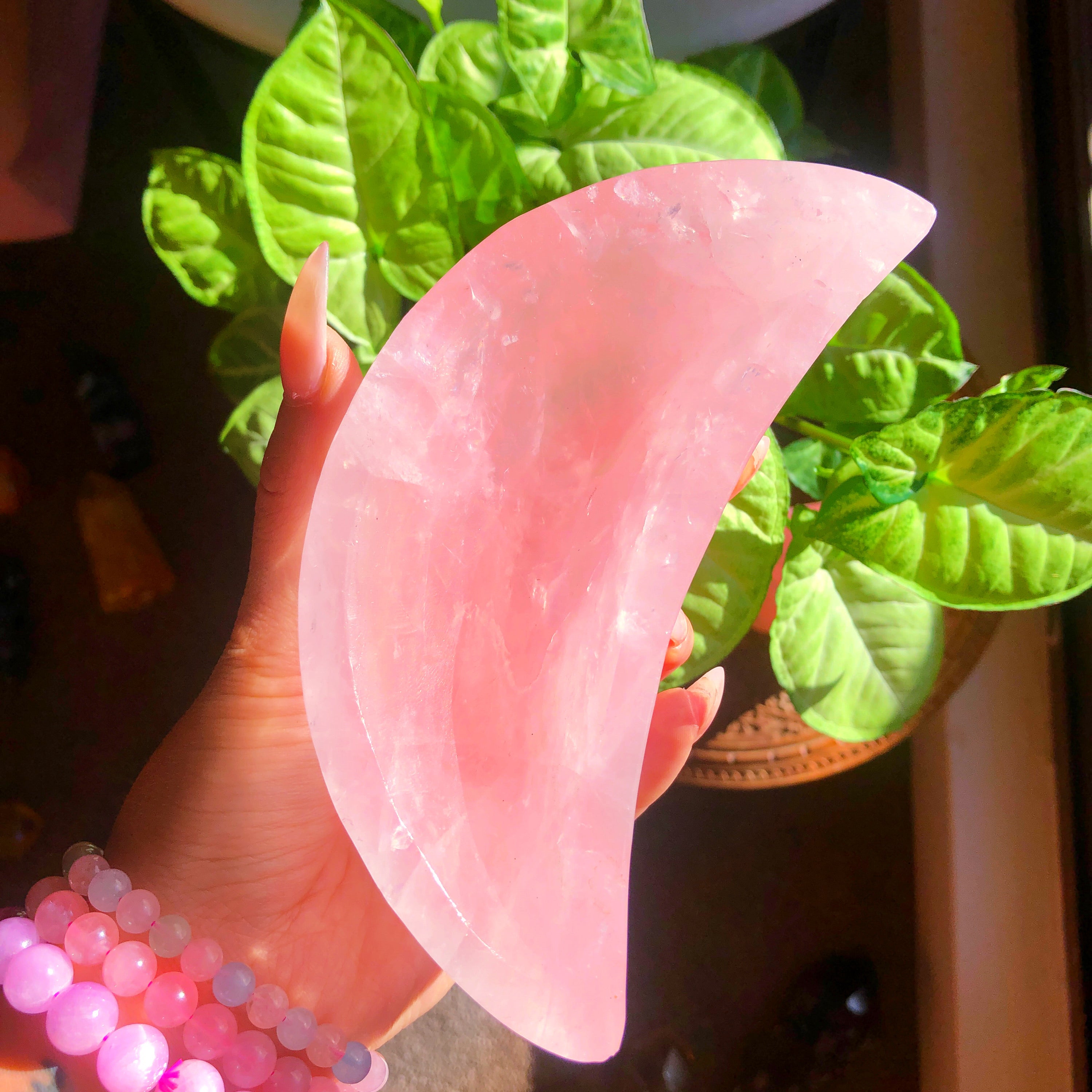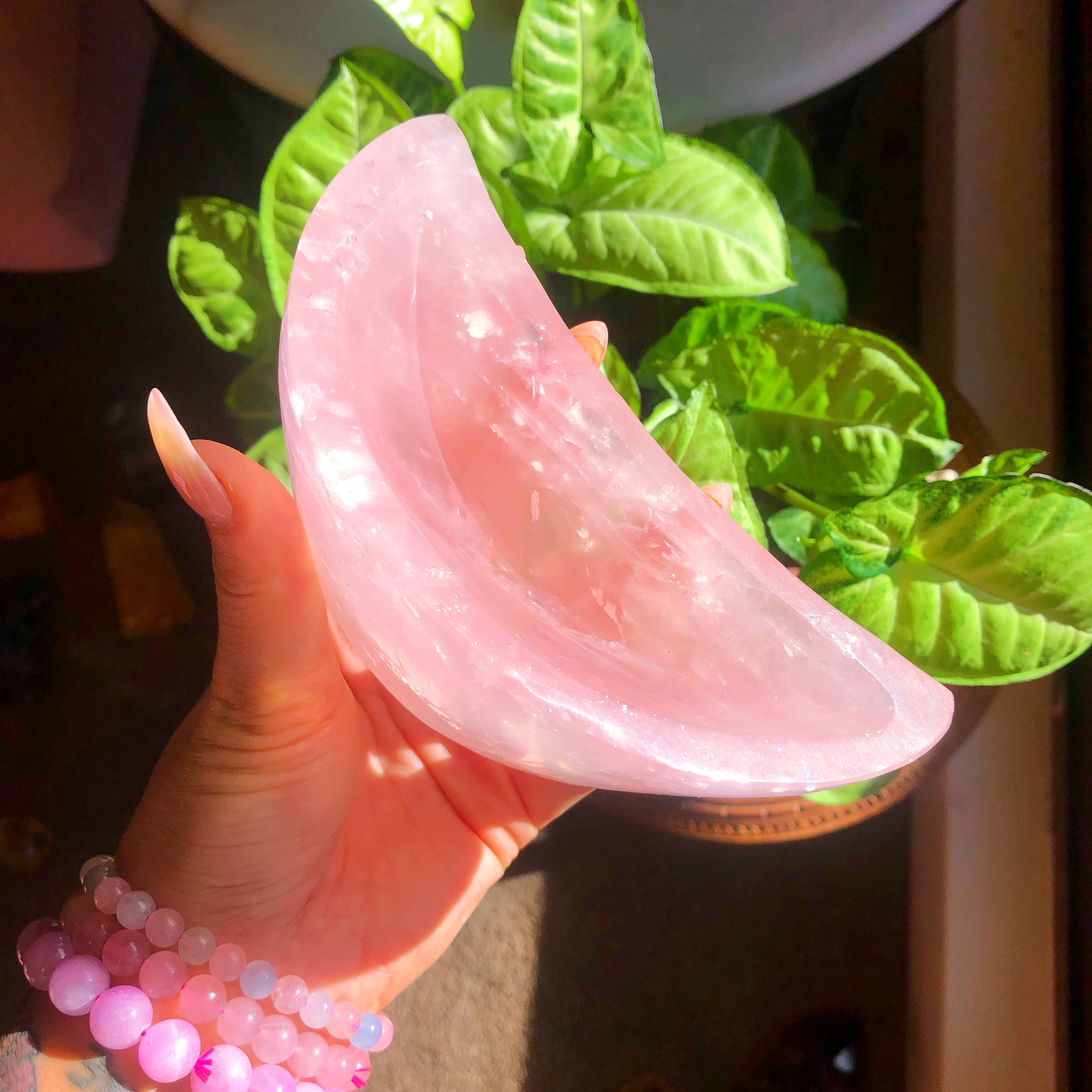 Rose Quartz Crystal Moon Bowl